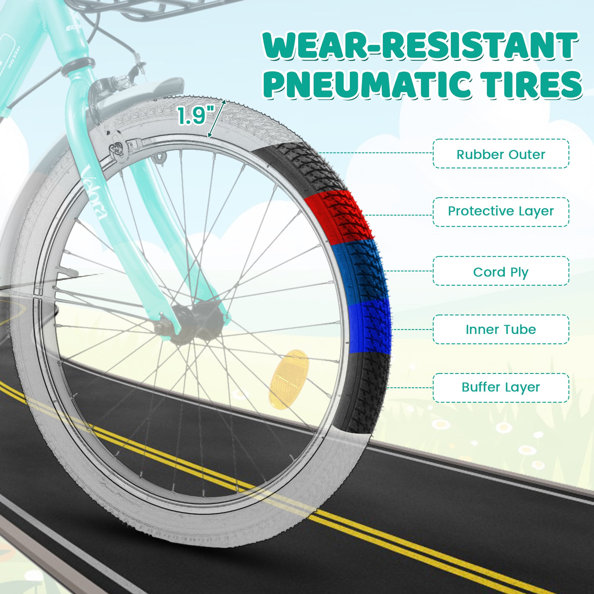 - 【Ideal Size for Young Riders】 This 20-inch bicycle is designed for kids, featuring a lightweight frame and 20" x 1.75" tires for balance and control on sidewalks and paved paths.