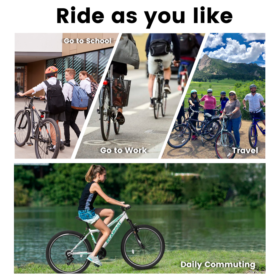 - 【Powerful Dual Disc Brakes】 Ecarpat mountain bikes feature a mechanical disc brake system that ensures safety. Front disc brakes can greatly reduce the braking distance and ensure that you can stop immediately in case of emergency. Safety always first.
