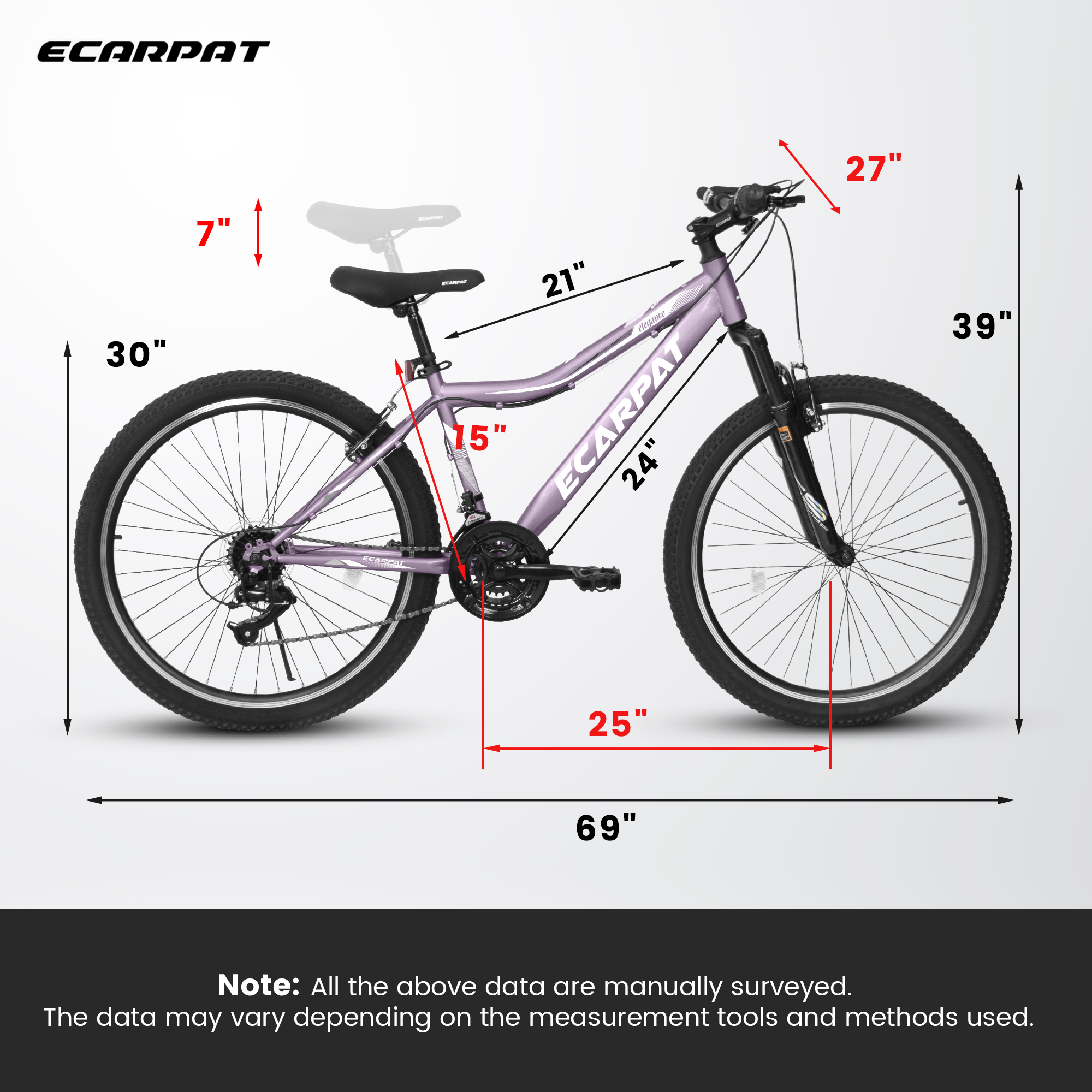 Product Name:A26208 Ecarpat 26 Inch Mountain Bike, 21-Speed V-Brake, Front Suspension, Carbon Steel Frame Mountain Bike For Teenagers Girls Women Bicycles