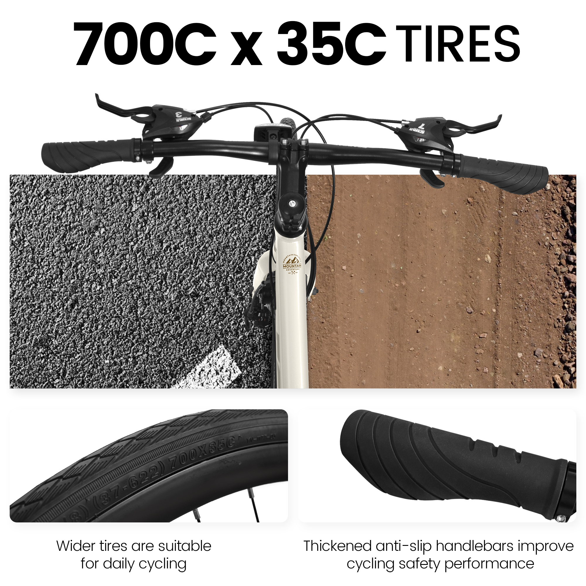 - 【Enhanced Stability and Comfort】Equipped with wide 700C x 35mm tires, this road bike offers superior stability and a comfortable ride, making it perfect for daily urban commutes and student travel.