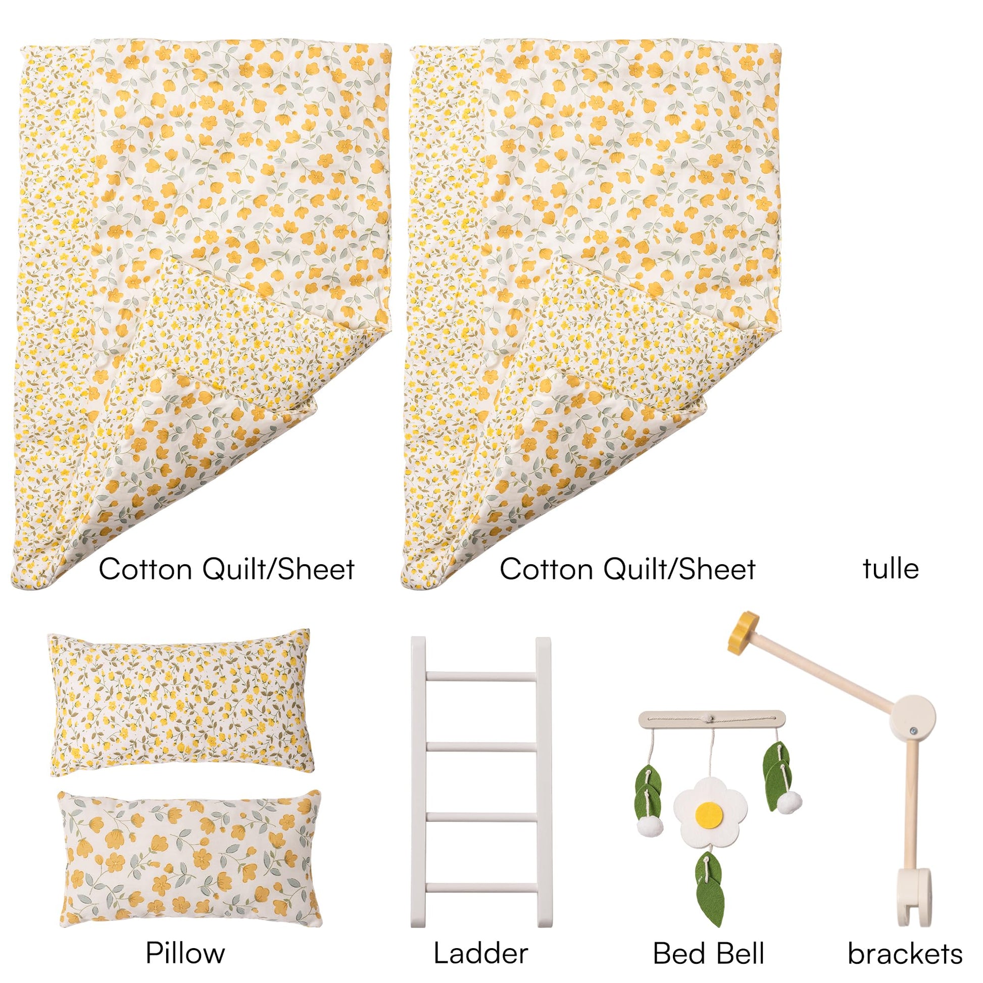 ROBOTIME Doll Bunk Beds Cradle For 18 Inch Dolls, Wooden Baby Doll Beds Cribs Fits American Girls